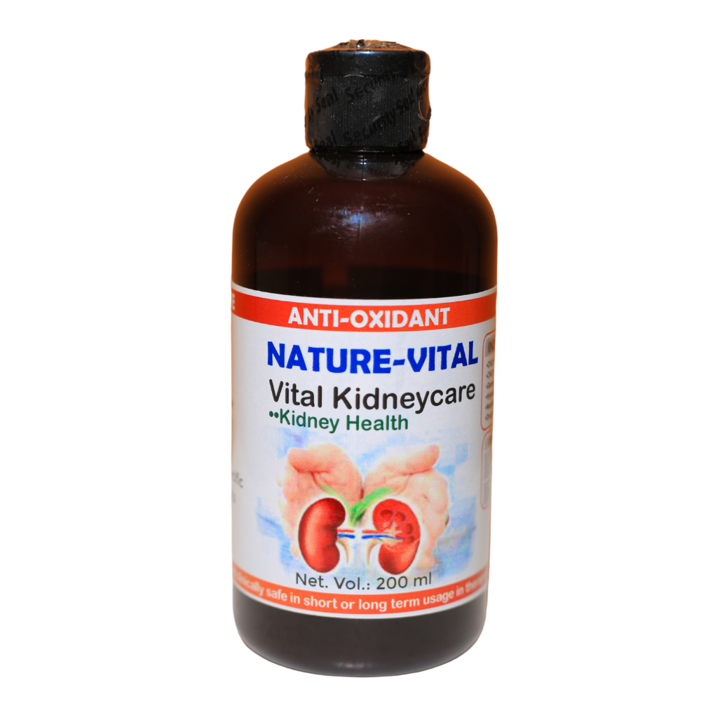 Vital Kidneycare 200ml liquid from Nature Wellness Center provides powerful kidney support and nephro-corrective action naturally. Additionally, this advanced kidney health supplement reduces elevated blood urea and serum creatinine levels effectively. Moreover, Vital Kidneycare protects vital nephrons while repairing kidney regenerative capacity through potent natural antioxidants.